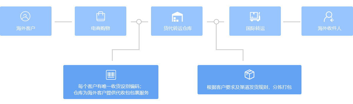 出口轉(zhuǎn)運系統(tǒng)為海外客戶提供代收包裹、倉儲管理、退換貨、國際快遞等服務(wù)管理;